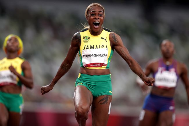 Elaine Thompson-Herah of Jamaica wins the womens 100m final at the 2020 Summer Olympics on Saturday July 31 2021 in Tokyo. Jamaica sweeps womens 100m. The 29-year-old ran 1061 seconds just 012secs short of the world record set 33 years ago by American Florence Griffith-Joyner.